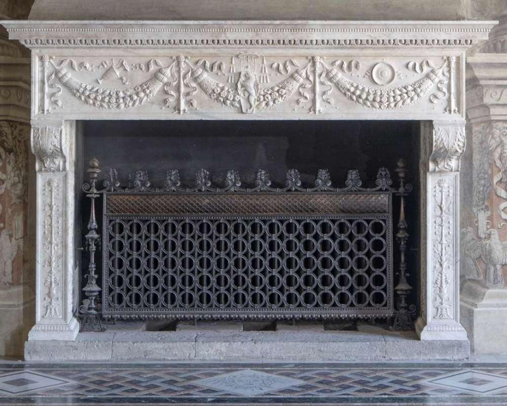Le mostre di porte e il camino monumentale recano lo stemma cardinalizio di Marco Barbo e sono riconducibili alla sua committenza. Impreziosito da un fregio con nastri, foglie e frutta, il camino è stato attribuito a Mino da Fiesole (1429-1484) e Giovanni Dalmata (1440-1515).